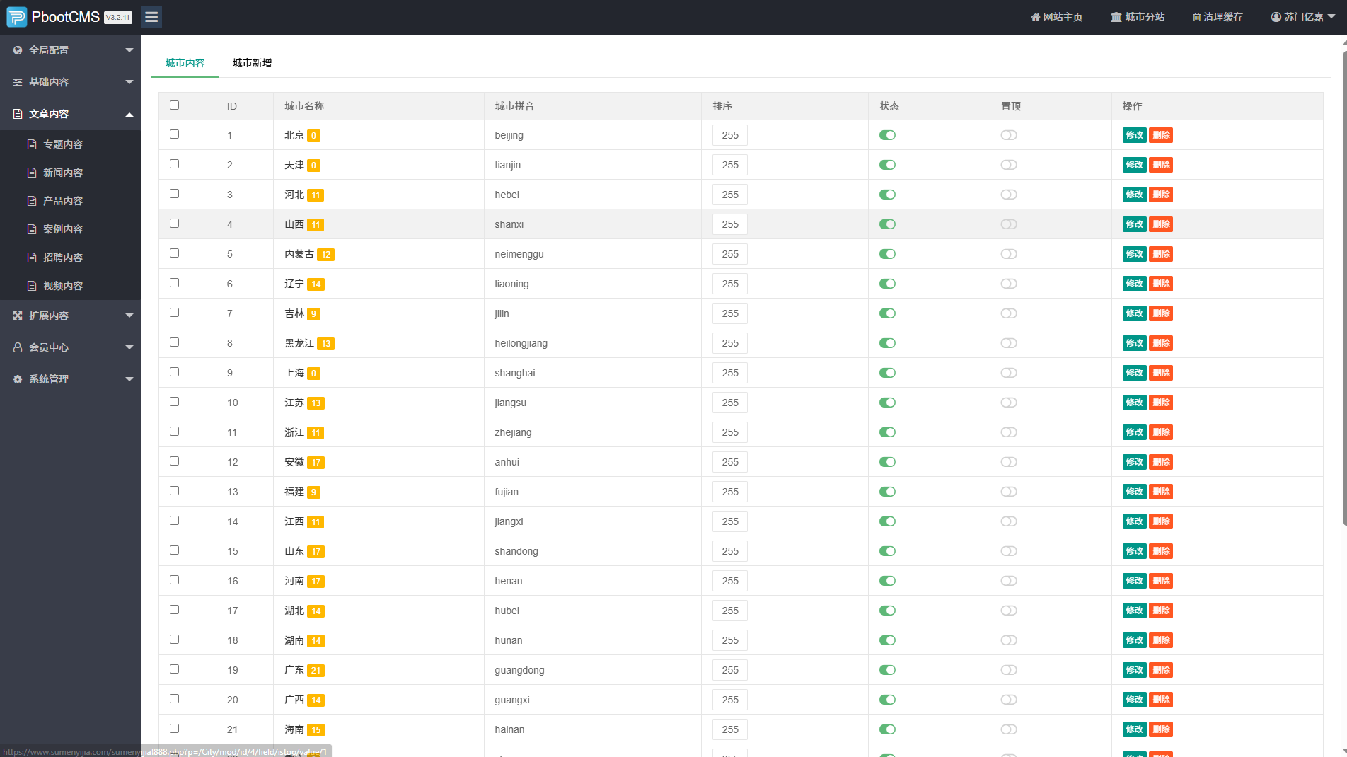 2、新增{pboot:city}标签,用于显示分站列表;下面有详解;