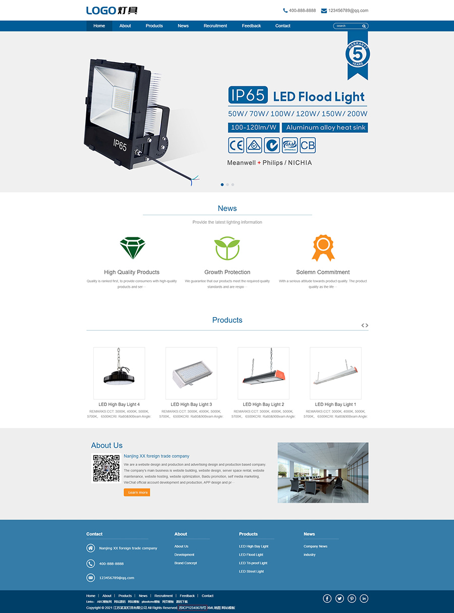 PbootCMS内核开发的营销型网站模板,该模板适用于外贸灯具、LED等企业,当然其他行业也可以做,只需要把文字图片换成其他行业的即可;