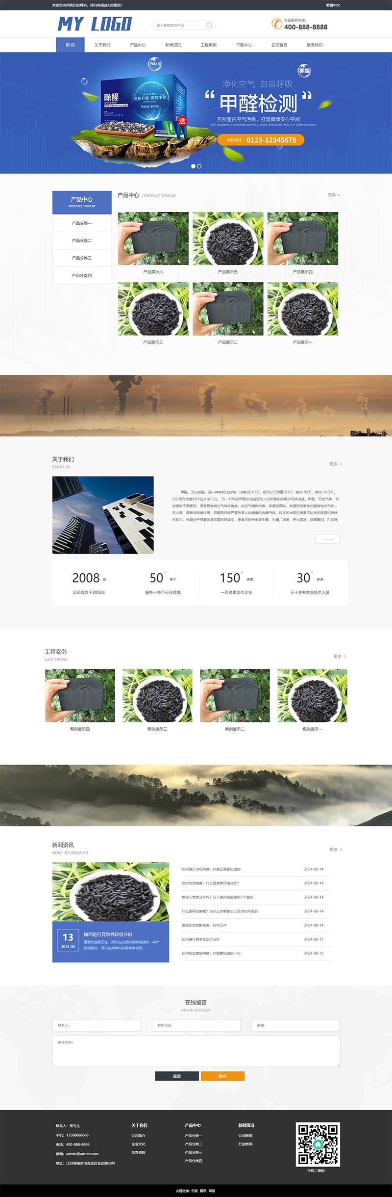 PbootCMS内核开发的网站模板,该模板适用于甲醛检测网站、环保科技网站等企业,当然其他行业也可以做,只需要把文字图片换成其他行业的即可;