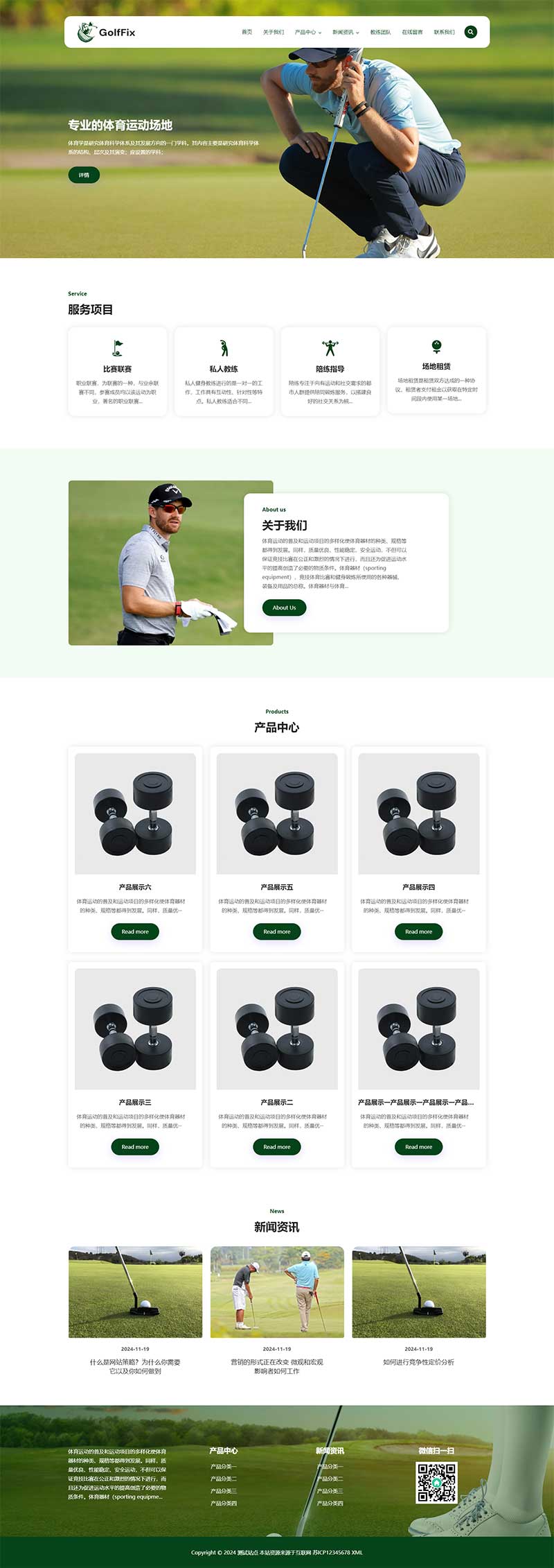 (自适应手机端)高尔夫球场pbootcms网站模板 体育运动场网站源码下载