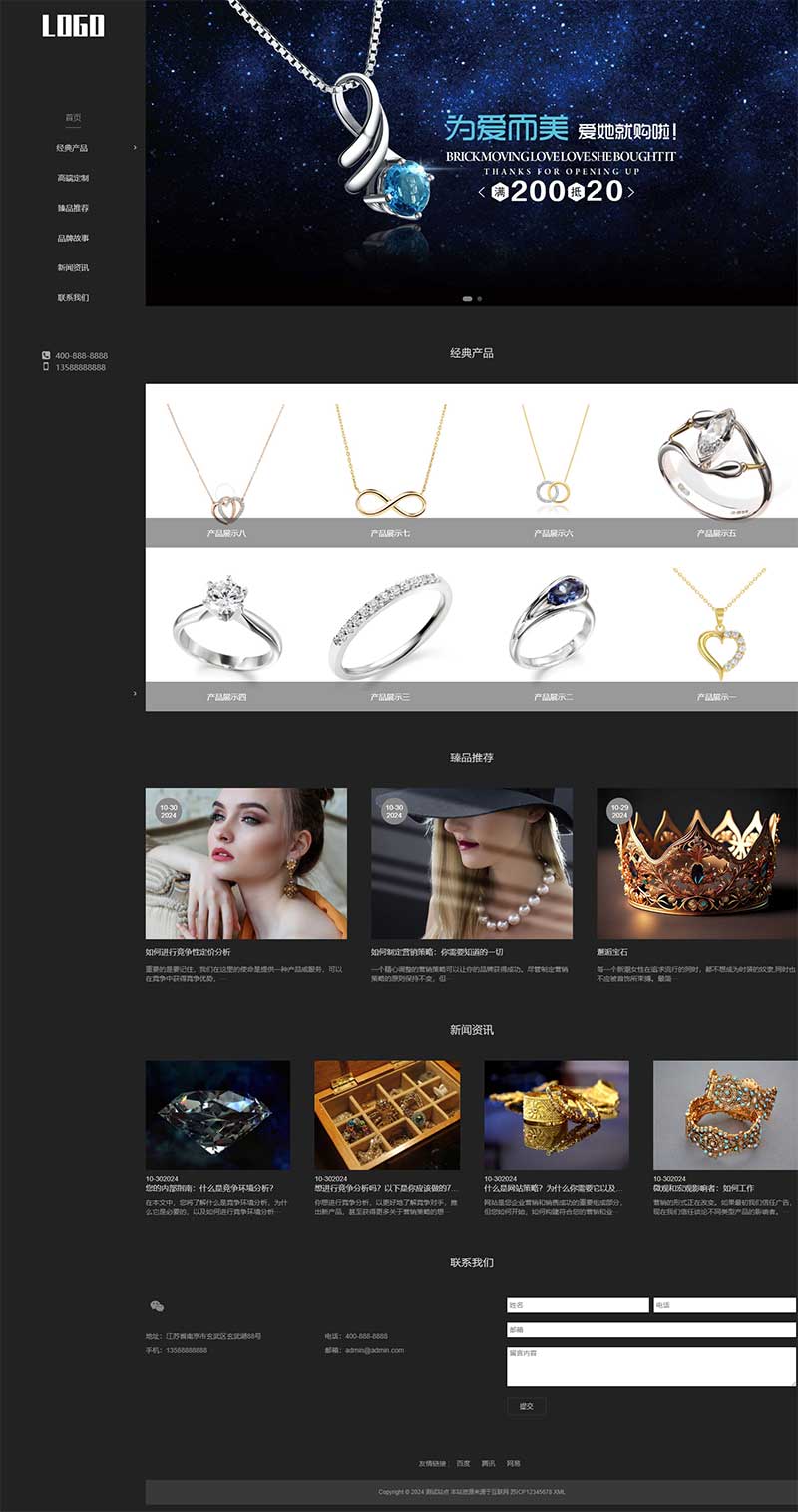 PbootCMS内核开发的网站模板,该模板适用于珠宝首饰网站、奢侈品网站等企业,当然其他行业也可以做,只需要把文字图片换成其他行业的即可;