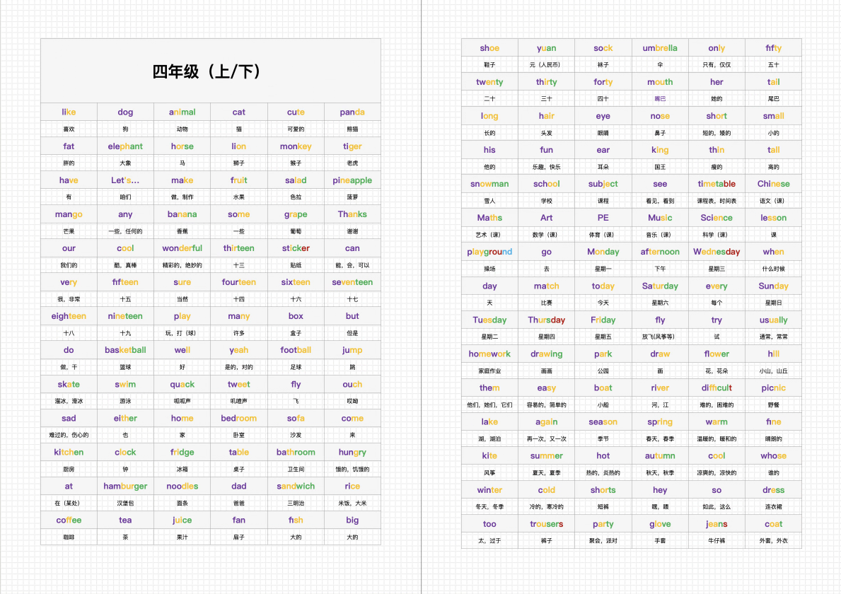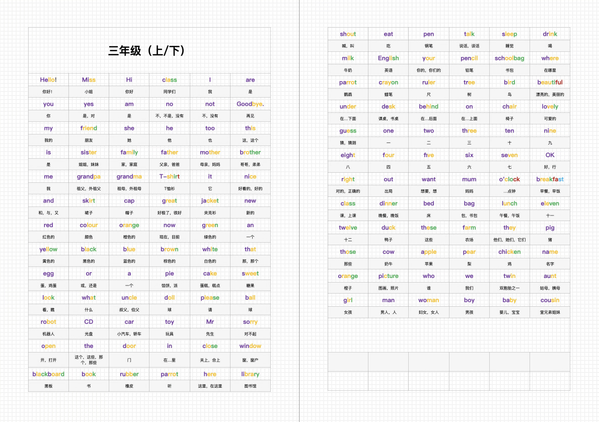 个人整理的 译林版 小学生1-6年级单词表